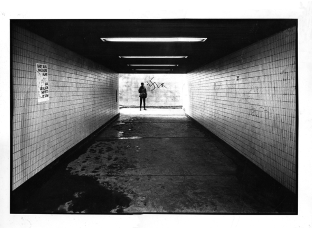 Your exhibition starts with a black and white photograph of a South Asian youth standing in a subway in front of a swastika and the National Front insignia. This photograph seems to encapsulate the level and viciousness of the racism you dealt with in the 1980s, the context in which your own anti-racist activism took place. Can you talk about the story behind it?