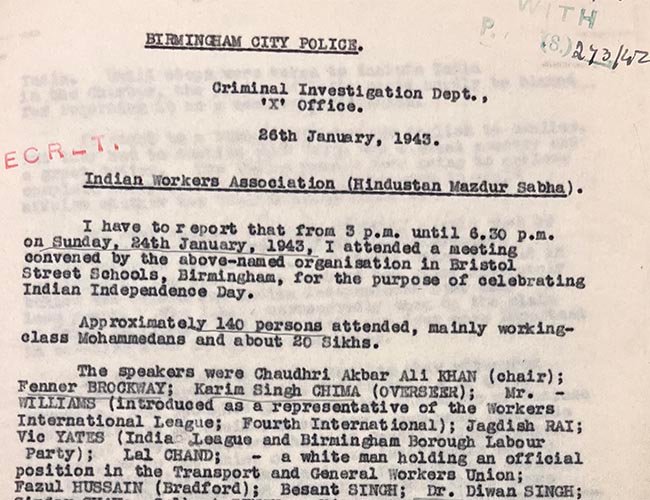 1942-1946: Police Surveillance of Indian Workers in Birmingham