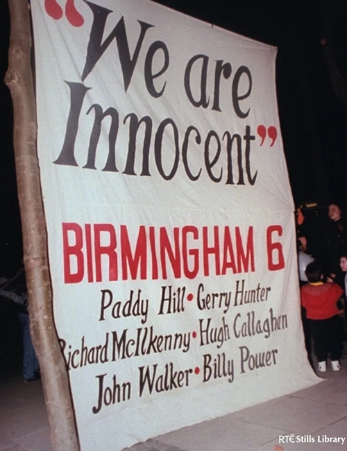 In November 1974, two IRA bombs exploded in Birmingham city centre pubs, killing 21 people and injuring over 180. Under intense pressure to find those responsible, police arrested six Irish men—Hugh Callaghan, Patrick Hill, Gerard Hunter, Richard McIlkenny, William Power, and John Walker—while they were travelling to a funeral in Belfast.